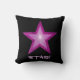 Design moderno com uma estrela rosa e branca "brilhante" num fundo preto. Travesseiro decorativo com um design personalizável para você personalizar com seu próprio texto, imagens e ideias. Esta é uma imagem de arte digital criada usando fotografias originais e técnicas digitais e impressa em tecido, ela não brilha ou contém faíscas reais.