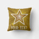 Design moderno com ouro "brilhante" e estrela branca num fundo "brilhante". Travesseiro decorativo com um design personalizável para você personalizar com seu próprio texto, imagens e ideias. Esta é uma imagem de arte digital criada usando fotografias originais e técnicas digitais e impressa em tecido, ela não brilha ou contém faíscas reais.