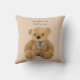 Travesseiro decorativo de urso Teddy, de recém-nascido monograma, com nome e data. É marrom-escuro de um lado e marrom-claro do outro. Disponível em diferentes tamanhos e materiais.