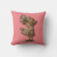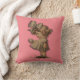 Menina com arco marrom num travesseiro decorativo de poliéster cor-de-rosa a 100%. 16 x 16.