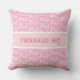 Um travesseiro bonito e reversível proclama o nosso amor de cor-de-rosa com a palavra cor-de-rosa espalhada frente e atrás. Perfeito no berçário do bebê, ou no quarto de qualquer amante rosa. Personalizar com um nome ou mensagem pessoal.