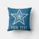 Design moderno com uma estrela azul e branca "brilhante" num fundo "brilhante". Travesseiro decorativo com um design personalizável para você personalizar com seu próprio texto, imagens e ideias. Esta é uma imagem de arte digital criada usando fotografias originais e técnicas digitais e impressa em tecido, ela não brilha ou contém faíscas reais.