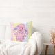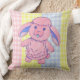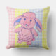 Travesseiro decorativo para quarto ou berçário de criança com coelho rosa fofo e fundo gingham multicolorido.
