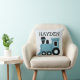 travesseiro decorativo para crianças com um padrão de fundo azul e branco impresso com um trem azul - personalize-o com o nome de seu filho para um travesseiro decorativo bonito para o quarto dele.
