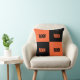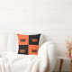 Travesseiro decorativo do Dia das Bruxas mostrado blocos alaranjados/pretos da cor com vaia! texto. Personalize este artigo ou compre-o como é.