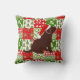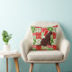 Travesseiro verde e vermelho do Natal da edredão do chocolate de Labrador do filhote de cachorro. O design original e engraçado da ilustração de labrador retriever criou por Naomi Ochiai de Japão. O filhote de cachorro de vista inocente do laboratório do chocolate está sentando-se com chapéus do papai noel. Design da silhueta do filhote de cachorro do laboratório.