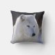 Fotografia do lobo ártico cortada na cabeça e no peito impressa nas bordas do travesseiro.