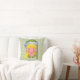 Travesseiro bonito com um duende da menina psto em alguma sala ajudar a espalhar o elogio do feriado. Um provérbio bonito está na parte traseira.