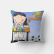 Girl in Science Lab travesseiro, apresenta uma cientista menina em um casaco de laboratório trabalhando com bifes e tubos de teste.