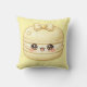 Uma almofada de travesseiro em forma de macaron amarelo brilhante e adorável em estilo kawaii, apresentando tons pastéis suaves e uma vibe alegre e divertida.