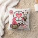O travesseiro dos Macacos da Paz apresenta macacos marrons bonitos balançando e tocando com símbolos de paz, corações, e um macaco vestindo um chapéu cor-de-rosa!