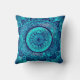 Adorável travesseiro estilo boêmio em Turquesa com um mandala azul escuro