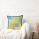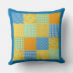 Um Travesseiro estilo chic country ou Cushion com um padrão falso de impressões Daffodil, com Bolinhas e Check Ginghams em verde, laranja, amarelo e azul e branco. Parte da coleção Posh & Painterly 'Daffy-down-Dillies'.