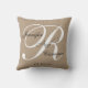 Monograma elegante e travesseiro feito sob encomenda do casamento dos nomes. design por Elke Clarke ©2011. Tan, pias batismais preto e branco do roteiro. Um design simples, clássico, mas extremamente elegante e versátil. O excelente como um presente de casamento para chás de casamento, festas de noivado, salvar as datas, os chás do casal e as celebrações do aniversário de casamento. Personalize com suas cores da informação pessoal e do casamento usando alertas de Zazzle. SEU TÃO FÁCIL. Adicione uma foto do casamento ou sua foto do noivado a um lado. Use "personalizam-no" menu para mudar o afastamento e o tamanho para caber seus nomes e iniciais. Imprimirá como você o vê na tela. Faça assim suas mudanças antes que você peça.
