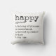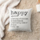 O amor e a amizade adoráveis inspiraram um travesseiro decorativo decorativo com design de tipografia branca e preta. O travesseiro lê: Feliz, adjetivo 1. sentimento de prazer ou contentamento 2. favorecida pela sorte ou pela sorte 3. você e eu. Faz um presente excelente para um amado, amigo especial, presente de casamento ou dia de os namorados.