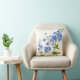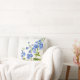Azul de arte ploral, travesseiro verde e creme. Impressão vibrante para trazer um toque de cor de verão para uma sala de estar ou quarto. © Delphinium impressão do trabalho artístico original em aquarela e guache por Sarah Trett. www.sarahtrett.com para www.mylittleeden.com.