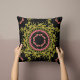 Clássico e dramático, este travesseiro apresenta uma coroa estonteante de flores cor-de-rosa e folhas verdes colocadas sobre um fundo negro ousado. Perfeito para um toque de elegância do eterno em espaços modernos ou inspirados na safra.
