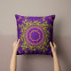 Rico e verdadeiro, este travesseiro roxo mostra a beleza de uma coroa floral rosa cercada por verde. Um sotaque ideal para estilos ousados e luxuosos de decoração.