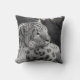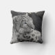 Um fim bonito acima da imagem de um leopardo de neve com os olhos azuis do gelo que olham sobre seu ombro em você. Dobre o travesseiro quadrado tomado partido com a mesma imagem que aparece em ambos os lados.