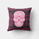 O rosa quente e o preto adoçam o travesseiro decorativo gótico do crânio e do design do Grunge dos rosas ou o coxim do acento que é grande para o dia do morto ou o Dia das Bruxas ou o qualquer um que ama os crânios ou o gótico. O fundo é uma cor damasco preta e cinzenta subtil. Embellished com rosas cor-de-rosa, floresce, e roda com um crânio do açúcar cor-de-rosa e branco no meio.
