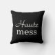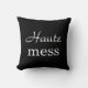 Este travesseiro preto e branco é decorado com o ditado bonito, Haute Mess na frente e atrás, fazer perfeito para um quarto, sala de estar ou sala de estar.