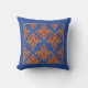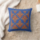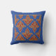 Uma almofada ou travesseiro de dispersão de na moda, com um padrão tradicional de "pulgas de lírios" em vermelho e ouro robusto e azul de meia-noite.
