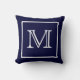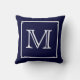Travesseiro MoJo Americano de Monograma Azul com Quadro Branco. Personalize com a sua inicial.