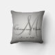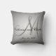 Travesseiro decorativo Monogrammed personalizado com nomes dos noivos e data do casamento. Faz um grande presente para recentemente weds. Você pode personalizar os textos. Elke Clarke© para MonogramGallery em Zazzle. Cinzas e preto. Excelente para seu quarto, cadeira favorita, como a decoração do divertimento em sua sala de família ou a adição decorativa formal a sua sala de visitas como uma lembrança do casamento.