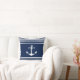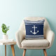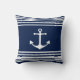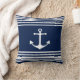 Travesseiro náutico listrado azul e branco com grande âncora na frente. Belo decoro para uma casa náutica.