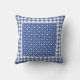 Um Travesseiro decorativo muito na moda ou Cushion em azul escuro na moda (Mônaco) com bolinhas brancas e cheque gingham.