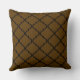 Adicione uma declaração simples e divertida e dê ao seu espaço de vida uma atualização com este travesseiro decorativo quadrado decorativo de quatrefoil sobre tendência. Mostrando um padrão geométrico preto de folha quatrefoil em forma de treliço contra fundo marrom ouro, ele adiciona belos detalhes a qualquer sala, cadeira ou cama.