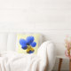 Este travesseiro espetacular mostra uma fotografia de uma flor Pansy selvagem. A foto foi colorida artificialmente, resultando em um pansy com tons claros e escuros de azul e um centro amarelo pálido. O fundo é amarelo pálido para mostrar ao máximo a beleza desta flor.