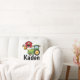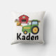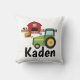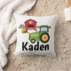 Um travesseiro adorável personalizado acolhedor para seu pouco fazendeiro futuro, termina com um trator verde e um celeiro vermelho.
