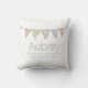 Bonito bandeira de revestimento desenhando travesseiro gráfico. Design de sinalizador simples em um fundo branco ou você pode personalizar o plano de fundo para a cor de sua escolha, se necessário. Personalize com seu próprio nome, inicial no sinalizador central e sua descrição de nome, lê atualmente Aubrey. © Desenho original e gráfico por Sarah Trett. www.sarahtrett.com para www.mylittleeden.com