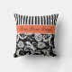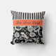 Estes damasco floral alaranjado, preto, e branco chique e teste padrão listrado 20" x20" travesseiro têm o texto customizeable que diz "vivo, riso do amor" nele, mas você pode personalizá-lo contudo que você quer. Se você tem quaisquer pedidos, envie por correio electrónico por favor niteowlstudio@gmail.com.