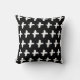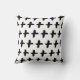 Travesseiro preto-e-branco-cruz, com o lado inverso em cores opostas, lembrando o estilo escandinavo. Parece excelente num quarto monocromático!