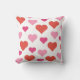 Corações bonitos em um travesseiro - vermelho, rosa claro e cor-de-rosa escuro - perfeito para um dormitório, quarto de menina ou sala de estar colorida.