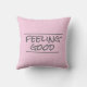 Este travesseiro de citação tem o texto se sentindo bem em cinzas e rosa para diversão e diversão em decoração domiciliar.