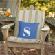 Travesseiro Real Azul Inicial Monograma Exterior. Travesseiro ao ar livre decorativo com solteiro inicial. Personalize rápida e facilmente.