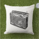 Ilustração retro do rádio. Travesseiro customizável da parte externa com monograma. Você pode facilmente mudar o monograma (pia batismal, tamanho, cor), a posição e o tamanho da ilustração e da cor do fundo da mudança clicando o botão da personalização.