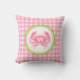 Um travesseiro com um design de gingham cor-de-rosa na frente e atrás. Caranguejo rosa na frente. Personalize com a sua inicial.