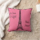 Oh la la! O travesseiro decorativo inspirado em francês bonito é feito em tons de rosa parisiense e preto profundo. Ilustração da Torre Eiffel e das palavras Le Tour D'Eiffel, Paris, França. Travesseiros estão disponíveis em vários tamanhos, formas e tecidos.