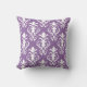 Travesseiro decorativo decorativo com uma cor damasco roxa. Handmade nos EUA. Grande travesseiro do algodão com um design do damasco do vintage no branco em um fundo roxo.