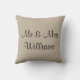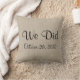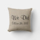 Este travesseiro decorativo rústico tem um fundo ilustrado de linho/burlap, de modo que tem o aspecto texturizado, mas ainda é macio ao toque. Esta almofada diz "Nós fizemos" e a data do casamento do casal recém-casado na frente, e "Sr. e Sra." com seu novo sobrenome no verso, fazer um travesseiro de sotaque excelente para a mesa da namorada do casamento, e o quarto ou sala de estar dos recém-casados após o casamento.
