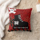 O travesseiro Skater Dude em preto, vermelho e branco apresenta lâminas, estrelas, chamas e design de crânio e bósseis.