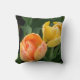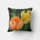 Tulipas de pêssego e ouro sombreadas decoram esta ideia de decoração de travesseiro de algodão, lindas cores!