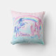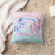 Travesseiro de unicórnio com lindos unicórnios em aquarela pastel em um fundo de arco-íris e nuvens. Este doce travesseiro de unicórnio é facilmente personalizado com o texto de sua escolha.