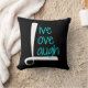 Travesseiro decorativo bonito, riso vivo do amor, branco & letras do Aqua no travesseiro preto