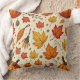 Este travesseiro é decorado com imagens de folhas e abóboras de outono, criando um sentimento de outono e abundância