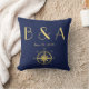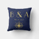 Travesseiros de casamento náuticos azuis monogramas com bússola dourada e texto personalizável - você pode mudar a data de casamento e adicionar iniciais